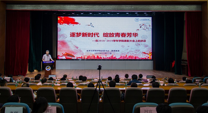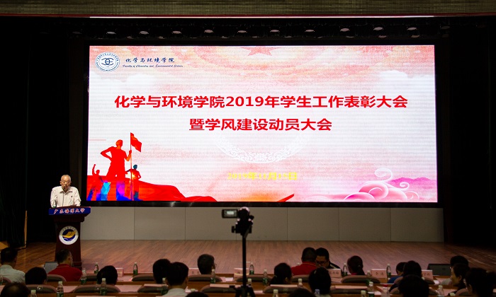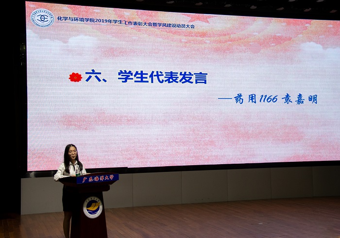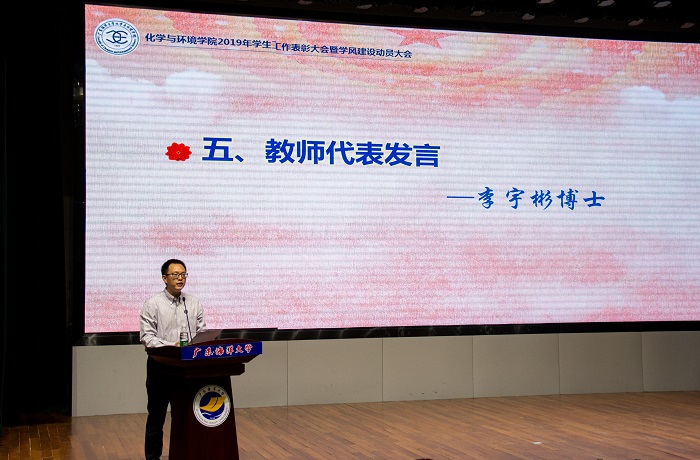 蔡鹰作最后总结讲话。他强调,此次表彰大会是进一步贯彻落实“不忘初心、牢记使命”主题教育,加强我院学风建设的重要活动。我们要进一步加强思想引领在人才培养的重要作用,要认真贯彻落实习近平总书记系列重要讲话精神,立德树人,教育和引导新时代大学生“不忘初心、牢记使命”。希望学院的学风建设能越来越好,同学们能逐梦新时代,绽放青春芳华,期待明年的表彰大会上涌现出更多的优秀化环学子!