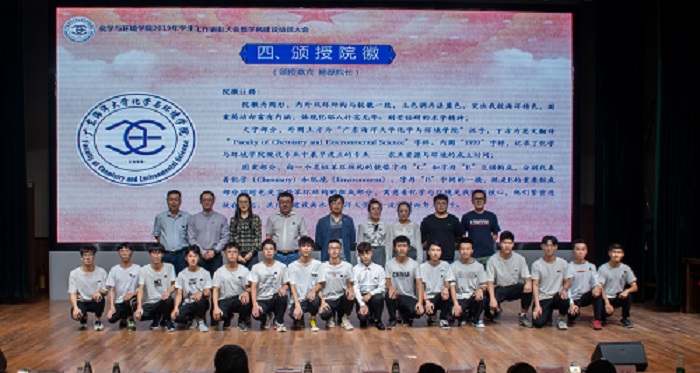 教师代表李宇彬老师在发言中提出,新时代呼唤新作为,培养创新型领军人才是教师新时代的使命与担当。要完善人才培养的新体系、探索人才培养的新路径,鼓励青年学子立鸿鹄志,在实现中华民族伟大复兴的中国梦的实践中放飞青春梦想。优秀学生代表药用1166班袁嘉明同学、十佳班级代表制药1176班肖玮玉同学分享了个人学习心得和创建优秀学风班级的宝贵经验。随后,学院为2019级新生举行颁授院徽仪式。