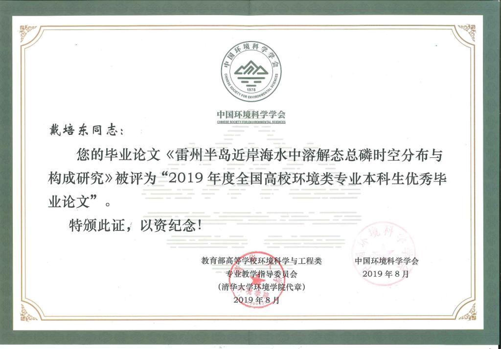 日前,教育部高等学校环境科学与工程类专业教学指导委员会与中国环境科学学会联合组织的2019年度全国高校环境类专业本科生优秀毕业设计(论文)征集活动。按照《全国高校环境科学与工程类专业本科生优秀毕业设计(论文)征集管理办法》规定,经专家初审和复审,并通过中国环境科学学会官方网站公示,我校英国威廉集团环境科学专业2019年毕业生戴培东同学荣获“2019年度全国高校环境类专业本科生优秀毕业论文”,并受邀与毕业论文指导教师张鹏博士和张际标副教授予8月23日-25日在陕西省西安市陕西宾馆参加中国环境科学学会2019年科学技术年会开幕式,并颁发优秀毕业论文证书。据悉,本次征集活动共收到作品161篇,优秀毕业设计(论文)合计54篇作品,此次征集活动充分显示了近年来我校环境科学专业人才培养的成果。