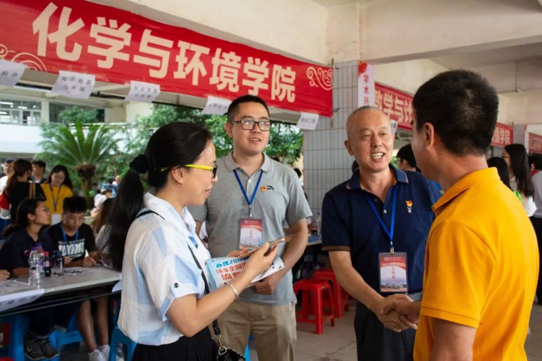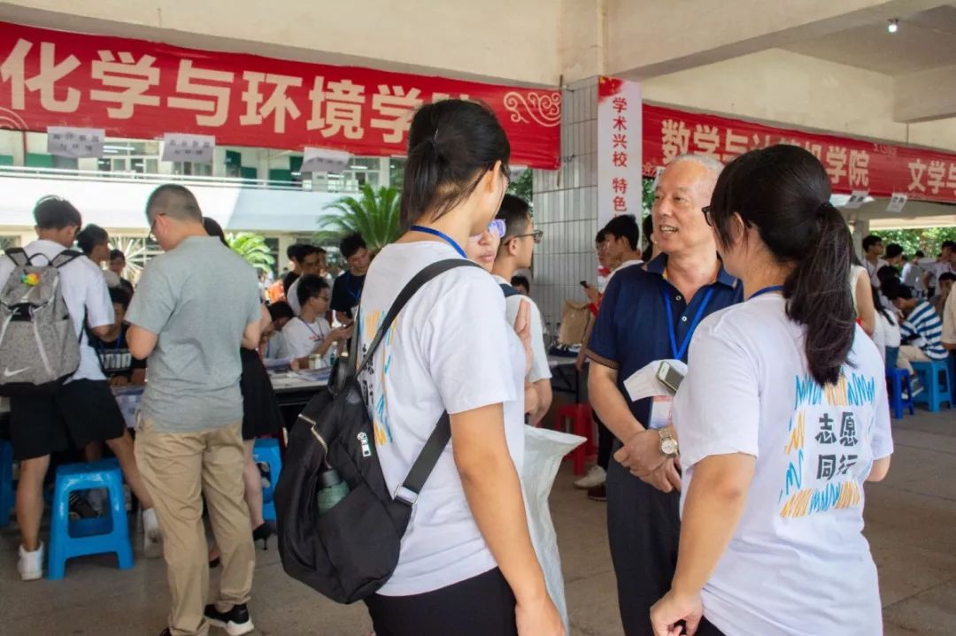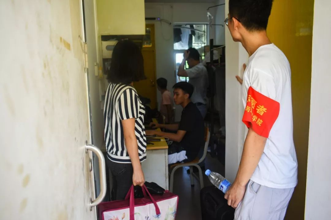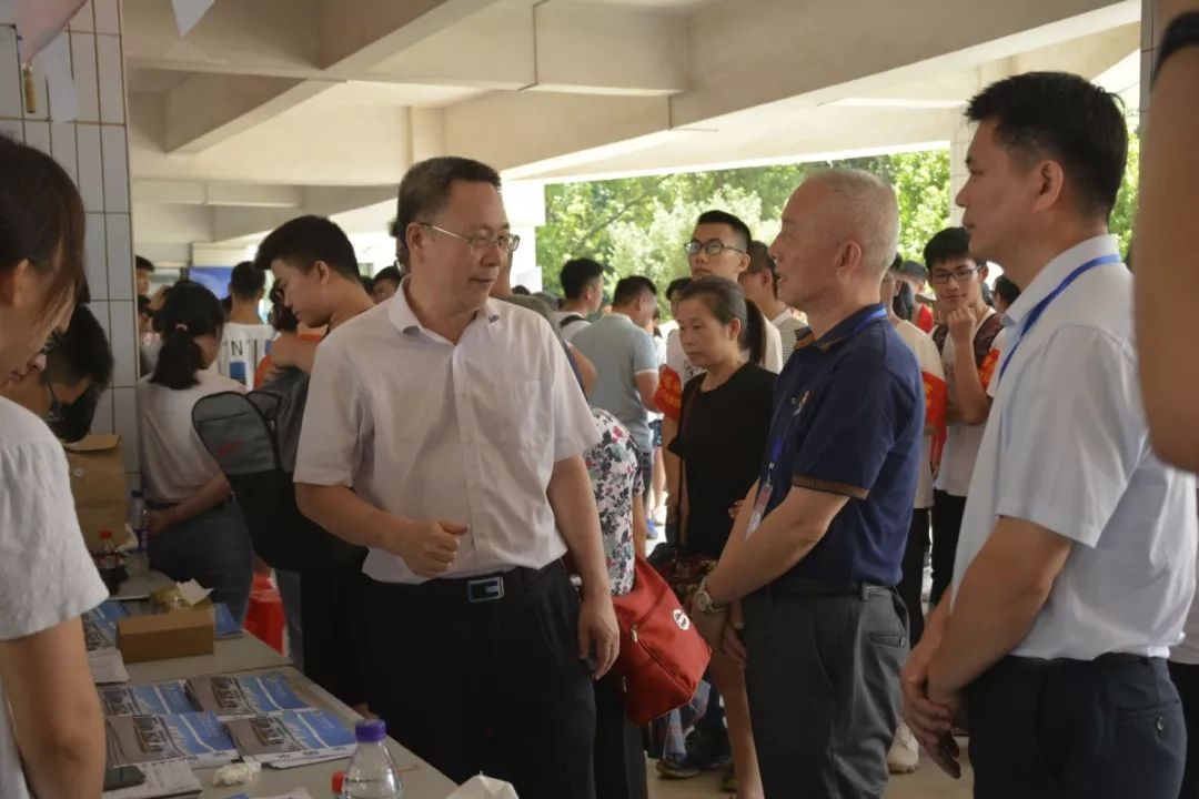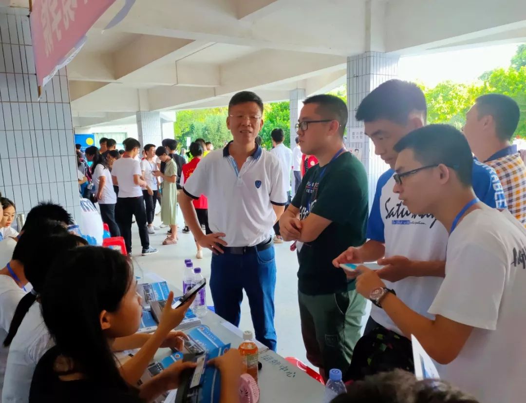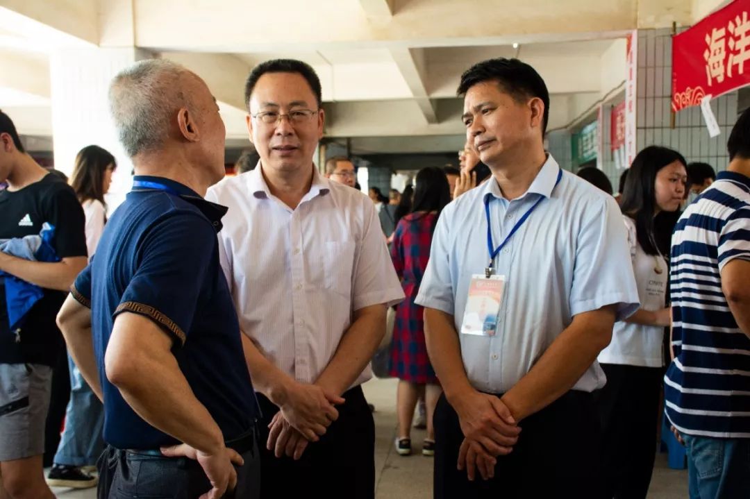 蔡鹰书记和柯伟副书记前来慰问工作人员工作情况,并对新生及家长交谈解答疑惑,只为更好的促进师生间的感情交流。
