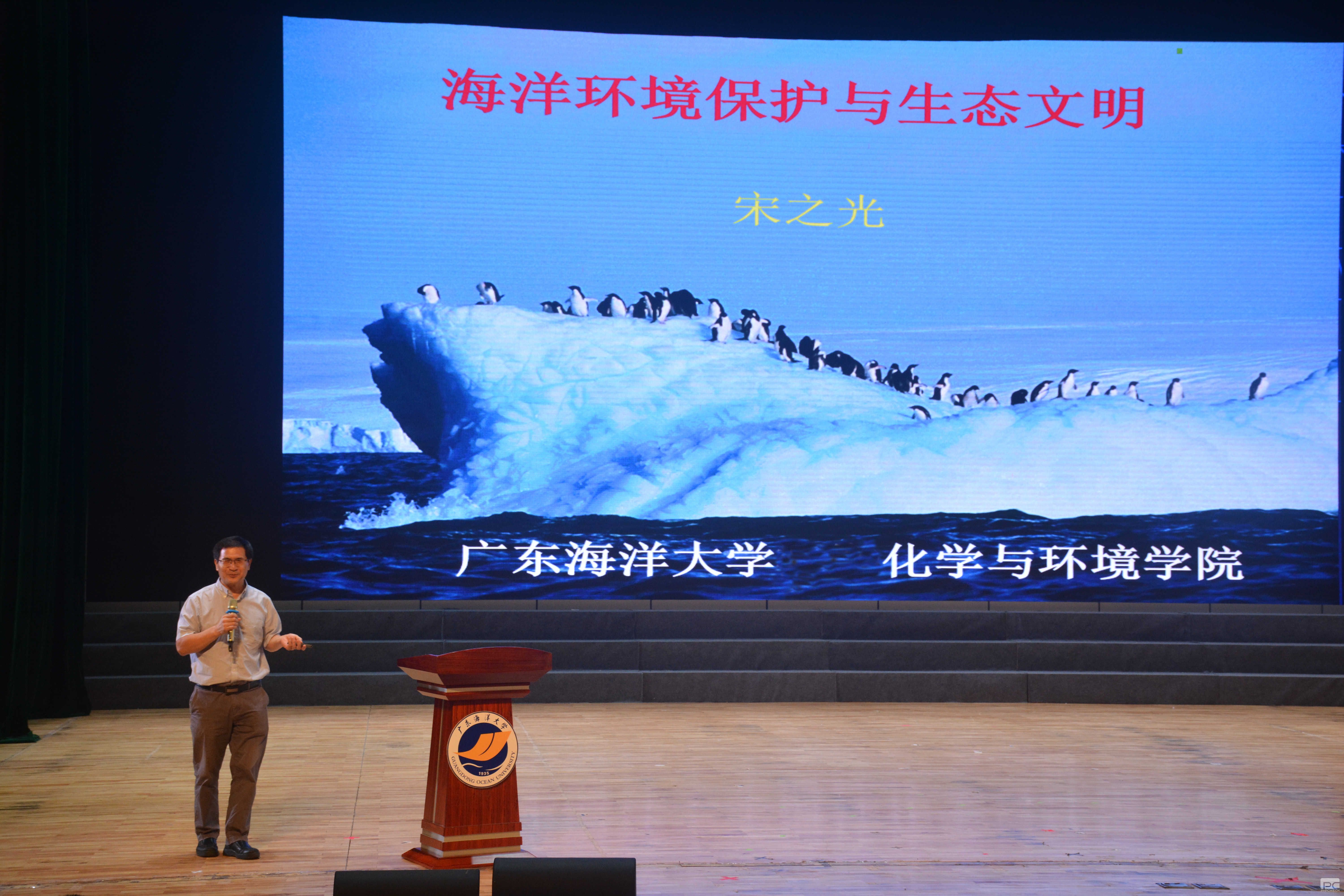 随后,宋之光教授做《海洋环境保护与生态文明》主题报告,报告从海洋的重要作用以及目前海洋所面临的严重污染、生态失衡等问题,通过触目惊心的海洋环境污染案例,分析当前世界所面临的塑料污染、石油污染、生活废弃物的污染等情况,并指出这些污染所引起的人类环境灾难,并指出教育、政府职能、企业责任、科技发展等四个方面来消除和减少对海洋环境的破坏。最后他号召大家把环保理念和生活结合起来,人人作为海洋环境保护的宣传者和守卫者。