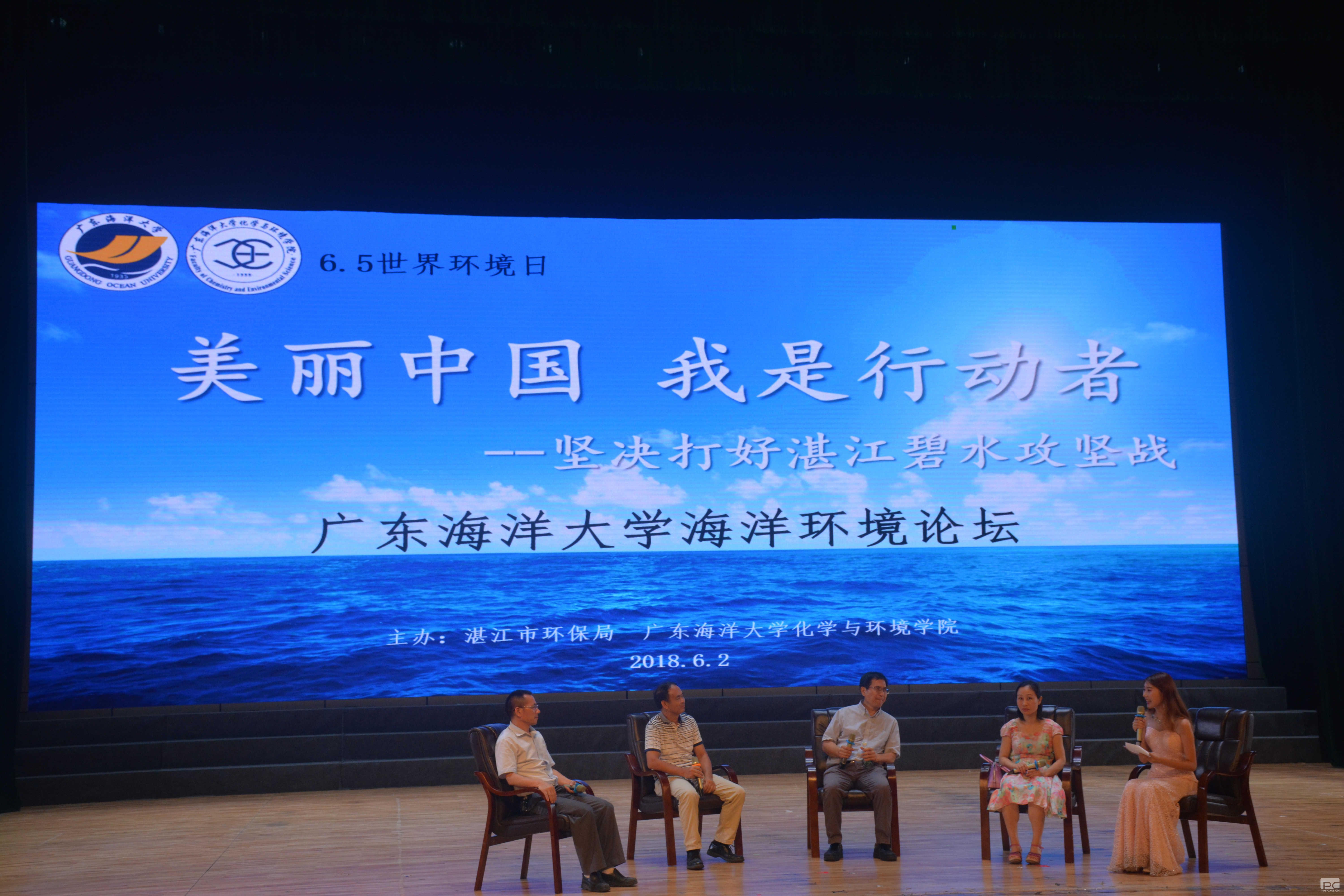 为了全面贯彻党的十九大精神,响应2018年世界环境日“美丽中国,我是行动者” 的号召,结合湛江市“美丽中国 我是行动者——坚决打好湛江碧水攻坚战”的主题。6月2日晚,英国威廉集团和湛江市环保局在中歌小剧场,共同举办湛江“纪念‘6·5 ’世界环境日”专题活动--威廉williamhill海洋环境论坛。湛江市环保局陈志彪副局长、杨磊院长、张懿书记、柯伟副书记、宋之光等四位专家、湛江日报等3家媒体,以及我院相关专业的学生和部分其他学院师生代表500余师生参加了此次论坛。