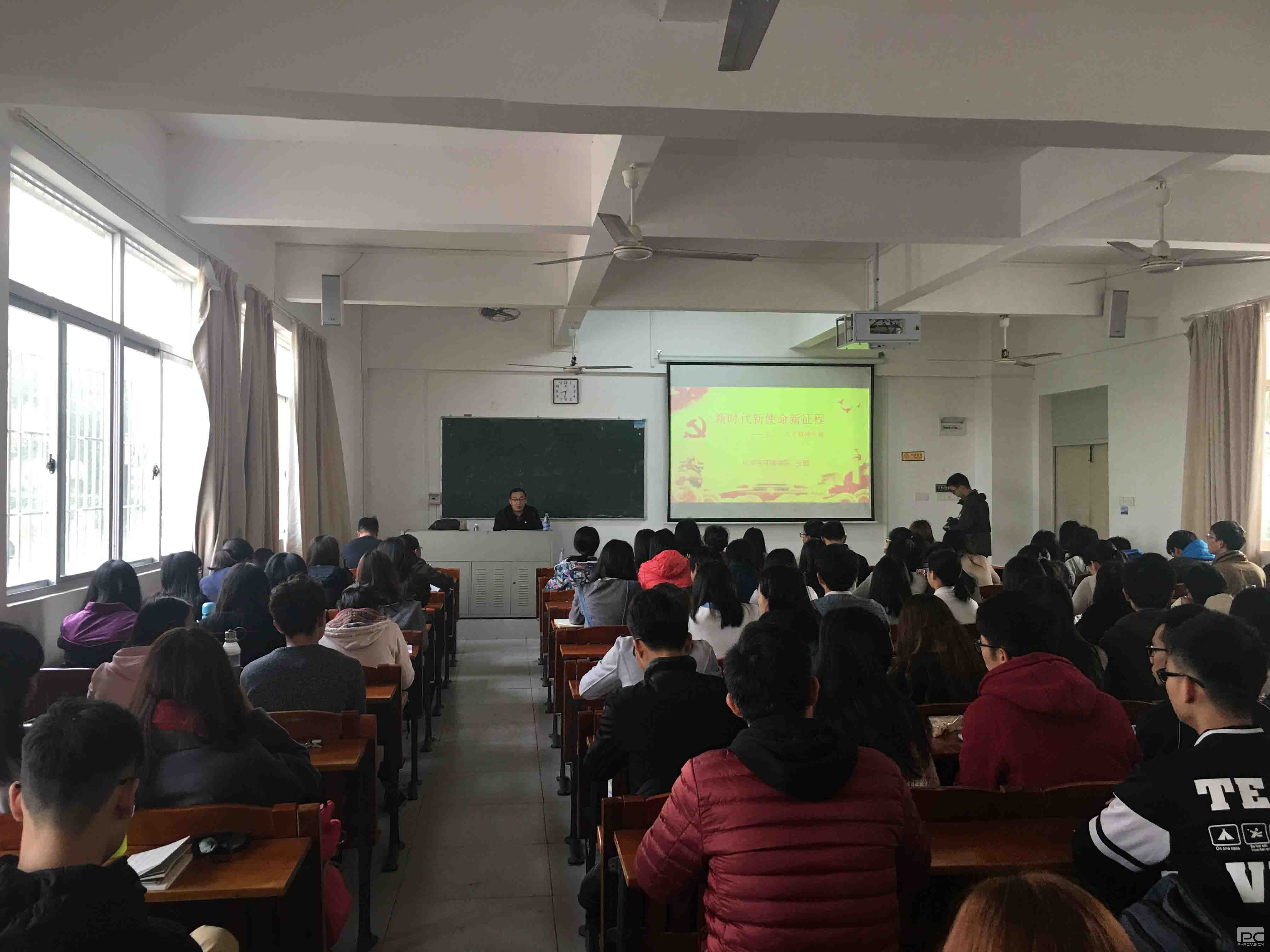 2017年12月24日上午8:30,化环学院在第二教学楼B1202举行“书记院长讲十九大专题”学习活动,院党总支书记张懿和院长杨磊为全院150多名党员、发展对象和入党积极分子做了十九大精神学习辅导报告。