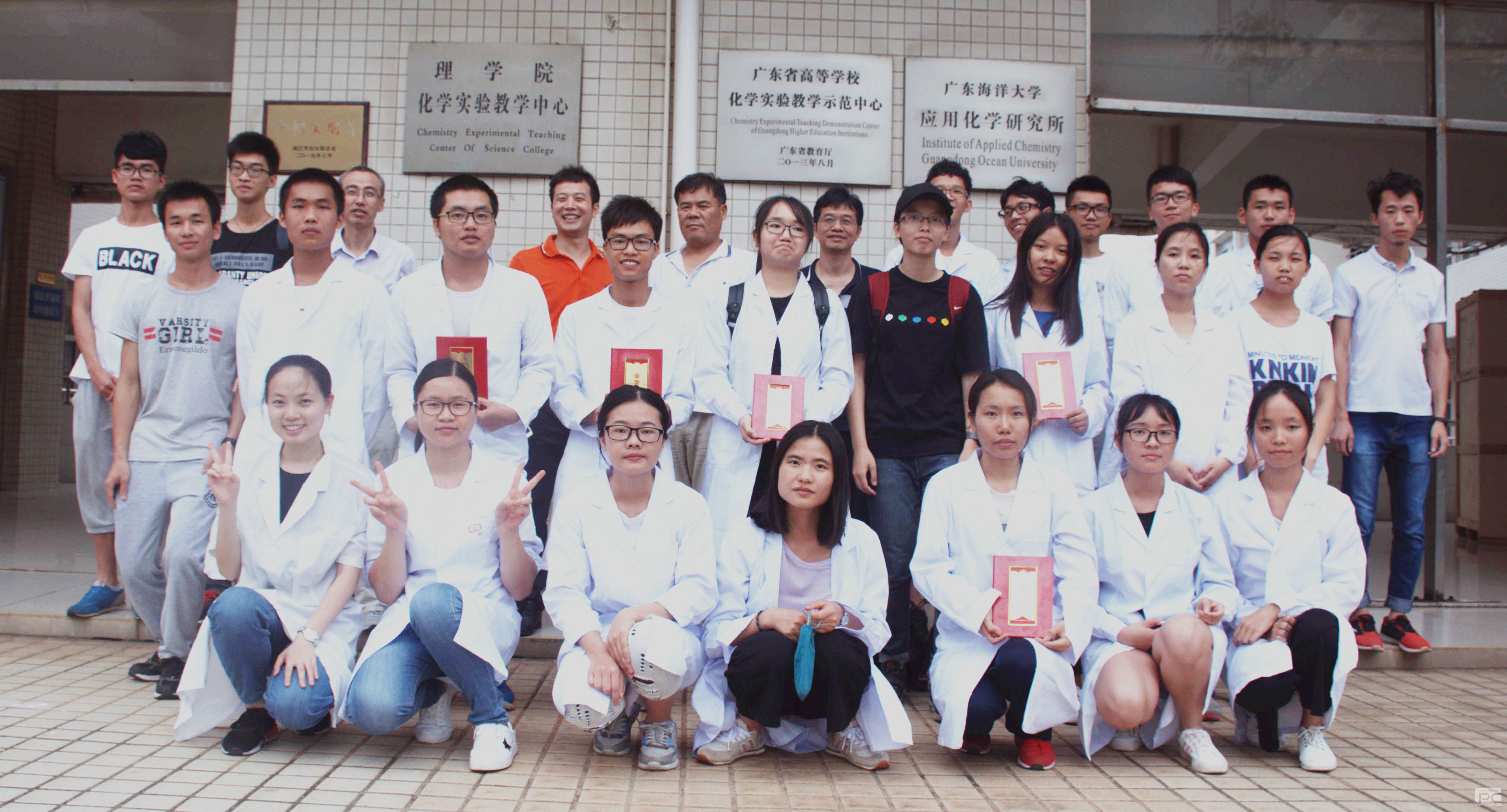 参赛选手与评委老师在实验中心门口合影留念