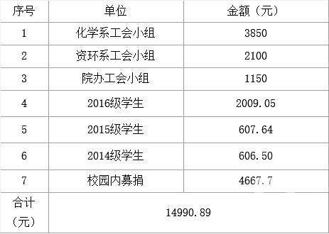 捐款不分多少,善举不分先后,贵在付出爱心。截至2017年6月01日,威廉希尔共收到捐款壹万肆仟玖佰玖拾圆捌角玖分(14990.89元),现欧阳康平的父亲已代收全部捐款,给欧阳康平作医疗费用。在此,威廉希尔向全体捐款师生表达最诚挚的谢意,感谢你们的无私奉献。希望欧阳康平同学勇敢坚强,战胜病魔,恢复健康,早日回到美丽的校园。