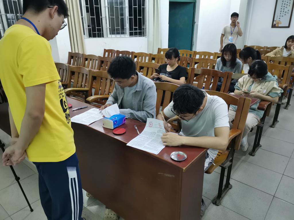 签约仪式上,勤工部干事协助李老师指导同学们进行合同信息核对并确认,强调了签字、捺手印等注意事项。