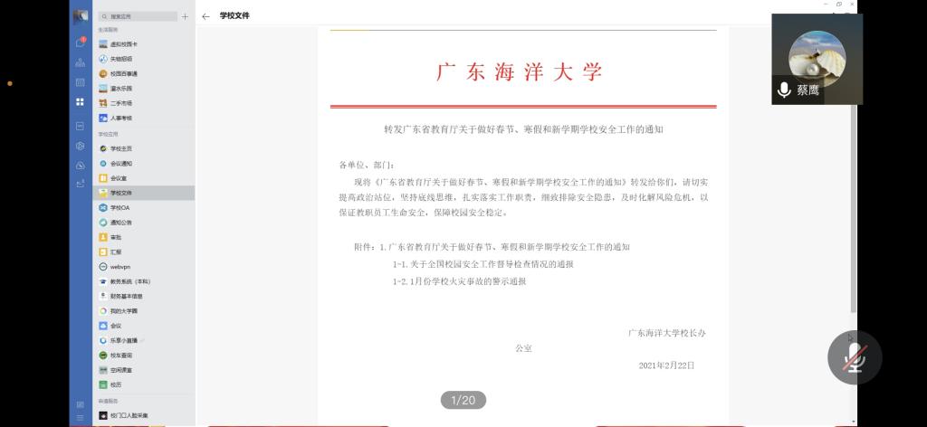 最后,蔡鹰要求学院各部门负责人及相关责任人要在分管院领导指导和监督下,按照此次会议部署,在开学前要对相关工作内容进行梳理、纠正,确保安全无漏洞、无死角,为学院教学、科研和育人工作顺利开展创造平安、有序的安全环境。