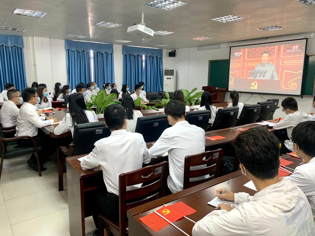 7月1日,英国威廉集团资源与环境系学生党支部全体党员,在第三实验楼B304收看了“庆祝中国共产党成立100周年大会”直播,并组织了座谈会。
