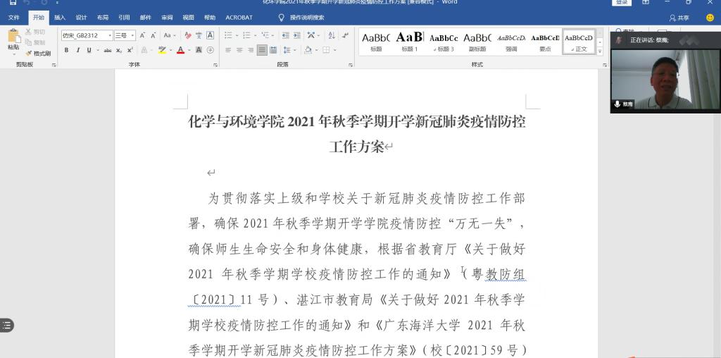 蔡鹰在会上指出,学院根据学校和上级关于新学期疫情防控工作有关文件和会议精神,制定了学院相应方案;同时他对照学院方案,对师生返校原则、条件、前中后安排,返校后管理、应急处置和工作要求等进行了详细说明,对每个环节的重点进行了强调。
