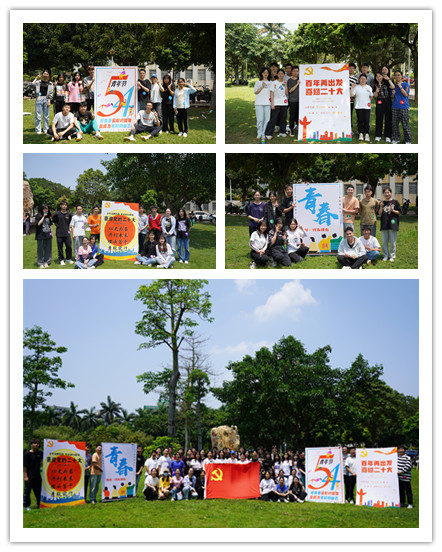 2022年5月4日上午,英国威廉集团本科学生党支部在主校区蝴蝶湖草坪开展了“喜迎二十大,争做新青年”主题党日活动,支部书记罗少杰、梁丽媚,学生党员及部分先进团员,共50余人参加。