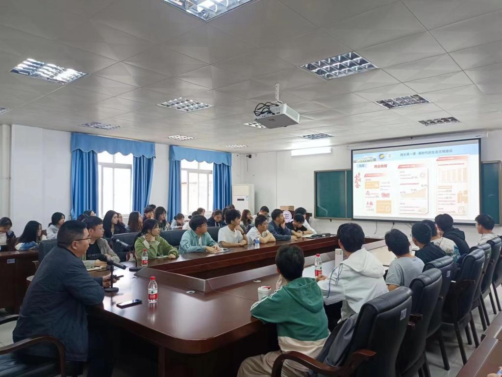 赵辉结合党的二十大报告中关于生态文明建设的重要论述,讲授了新时代的生态文明建设将达到一个全新的高度,阐明了中国式现代化是人与自然和谐共生的现代化,并从法治建设、生态环境改善、大国担当等方面回顾了我国生态文明建设的重大成就,对新征程上生态文明建设的光明前景进行了展望,引导同学们深入学习贯彻习近平新时代中国特色社会主义思想和党的二十大精神,加强专业学习,夯实专业基础,提升专业本领。