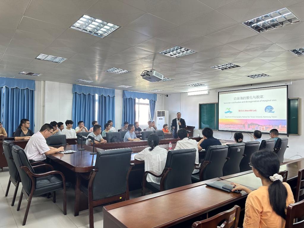 7月10日上午,在湖光校区望海楼B304会议室,中国台湾中山大学雷汉杰博士应邀为学院广大师生作了《边缘海的酸化与脱氧》学术报告。报告会由赵辉院长主持,学院教师、研究生参加了报告会。