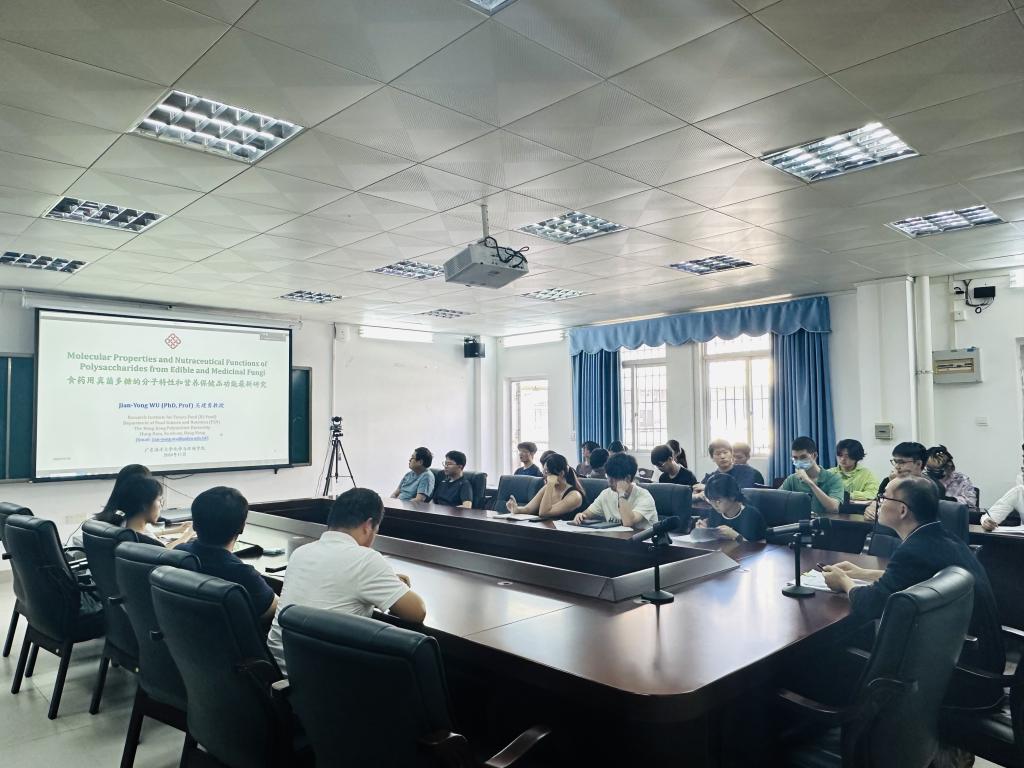 11月12日下午,在湖光校区望海楼B304会议室,香港理工大学吴建勇教授为学院广大师生作了《食药用真菌多糖的分子特性和营养保健品功能研究》的学术报告。李程鹏副院长、学院教师及研究生参加了报告会,报告会由李程鹏主持。