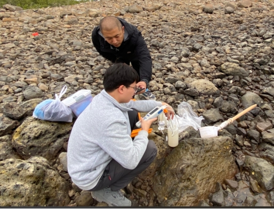 调研团队一行对角尾乡牡蛎苗种来源、养殖周期、养殖规模以及提升养成品质的关键瓶颈进行了深入探究。同时,团队成员对成品牡蛎的品质及其销售状况进行了实地考察。在调研过程中,队员们积极搜集牡蛎养殖过程中遇到的问题,可为后续研究积累了宝贵的一手资料。在此期间,我院师生携带专业设备对牡蛎养殖区的水质进行了现场测量和取样监测,以确保养殖环境的持续健康发展。此外,团队还对牡蛎的出肉率、营养成分、风味物质含量等关键指标进行了详细取样调查,旨在为提升牡蛎品质提供坚实的科学依据。