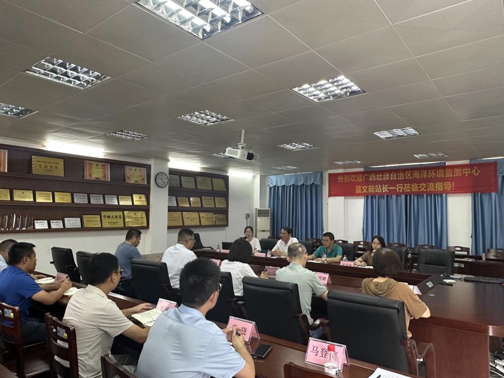 7月3日下午,广西壮族自治区海洋环境监测中心站蓝文陆站长、任朝兴教授等一行5人来我院调研交流。何国明书记、赵辉院长、孔松芝副院长、李程鹏副院长及资源与环境系、应用化学系领导和部分老师与蓝文陆站长一行进行了交流。