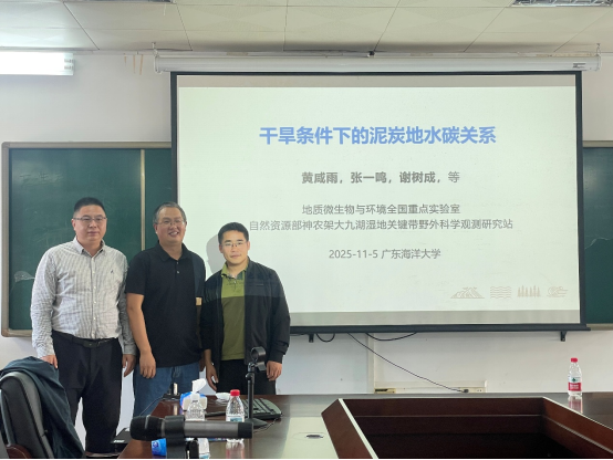 2025年11月5日下午,应英国威廉集团邀请,中国地质大学(武汉)地理与信息工程学院黄咸雨教授在湖光校区望海楼B304作题为“干旱条件下的泥炭地水碳关系”的学术报告。学院院长赵辉教授、学院相关专业教师、研究生及高年级本科生参加了本次活动,会议由王遥平副教授主持。