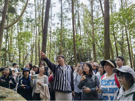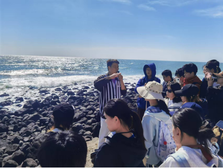 南宁师范大学地理科学与规划学院院长助理卢炳雄副教授率领师生一行89人前来湛江,与我院李素霞教授带领的45名师生共同组成实习团队。在三天的时间里,实习团队先后考察了湖光岩火山地貌、硇洲岛火山岩海岸、金牛岛红树林等典型地理地貌和生态系统,开展了系统化、多尺度的实地调查。实习过程中,卢炳雄副教授从地质演化与环境响应角度深入解析了湖光岩的形成机制;在硇洲岛,师生们重点考察了海岸带地貌演变及其生态效应;李素霞教授在金牛岛红树林基地,深入阐释湿地的生态功能与保护策略。同期举行的课程实习研讨会上,双方围绕“融合环境与地理,共筑育人新平台”主题进行了深入交流,就实习基地共建、双导师制、跨校教学科研合作等达成多项共识,致力于构建“资源互通、课程融合、成果共享”的协同育人新机制。